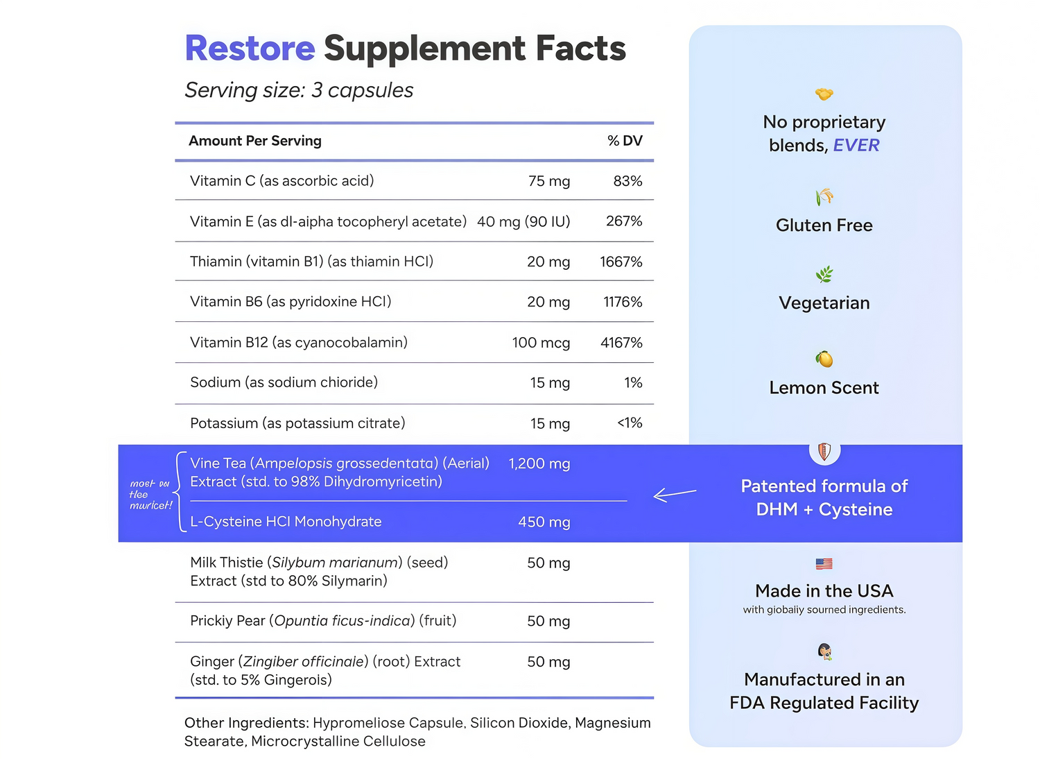 Restore has a patented dual action formula that works to support yourliver & help you feel better after drinking.
