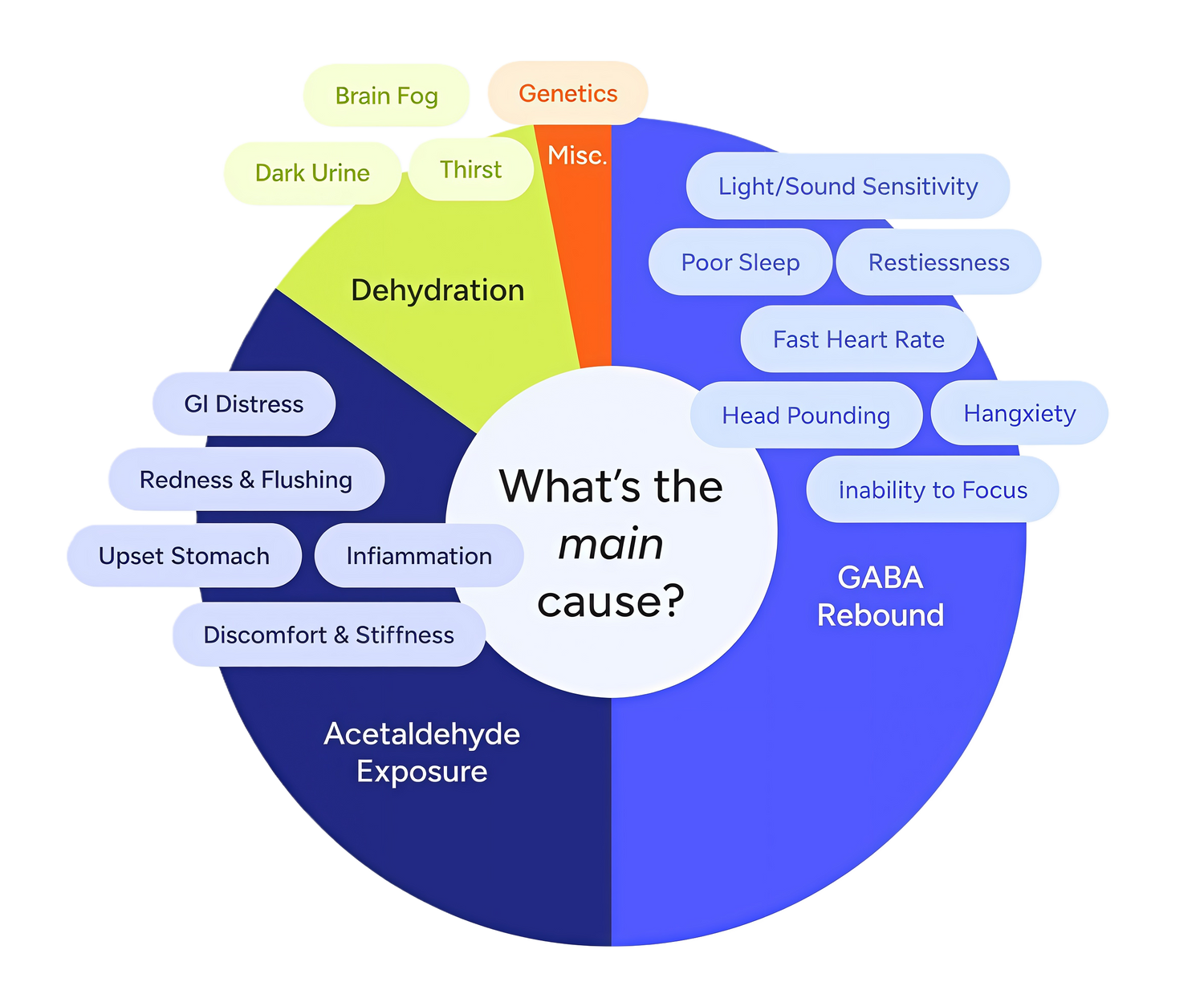 Alcohol converts into acetaldehyde, a compound 20x more toxic than alcohol itself, before safely clearing from your system. Your body can only metabolize 1 drink’s worth of acetaldehyde per hour, working overtime to help you feel better.